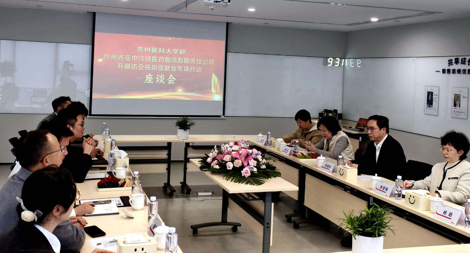 为促进校企交流,推进毕业生就业工作。3月10日上午,校党委常委、附属医院党委书记李海洋带队到贵州省亚中冷链医药物流有限公司开展访企拓岗促就业专项行动并进行座谈。医学检验学院党政领导李雪梅、谭玉洁、杨飏、费樱陪同,医学检验学院有关科室负责人参加。